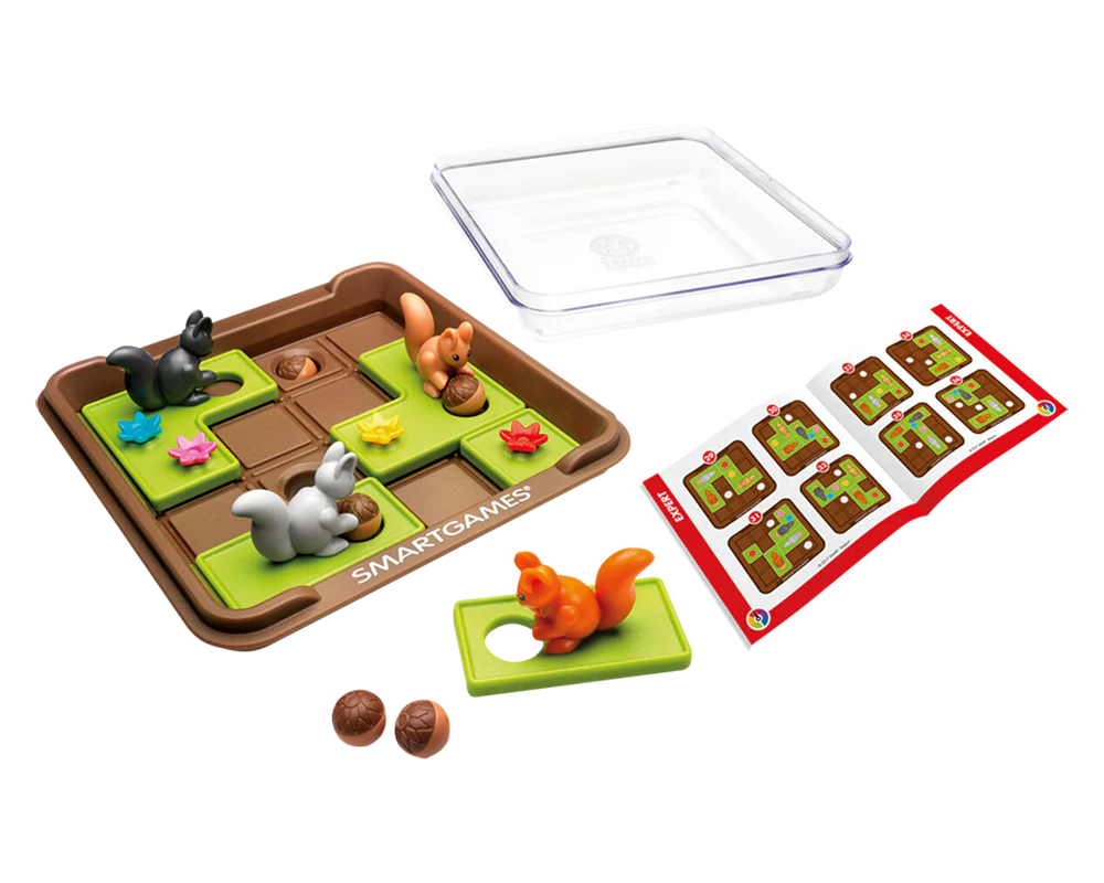 Deslizando a las ardillas a lo largo y ancho del tablero para depositar las bellotas en los huecos correspondientes. Es un juego a la medida de quien busca un reto mental. Desarrolla las capacidades lógicas, visuales y de resolución de problemas de los más pequeños. Incluso los más grandes encontrarán este puzzle desafiante.