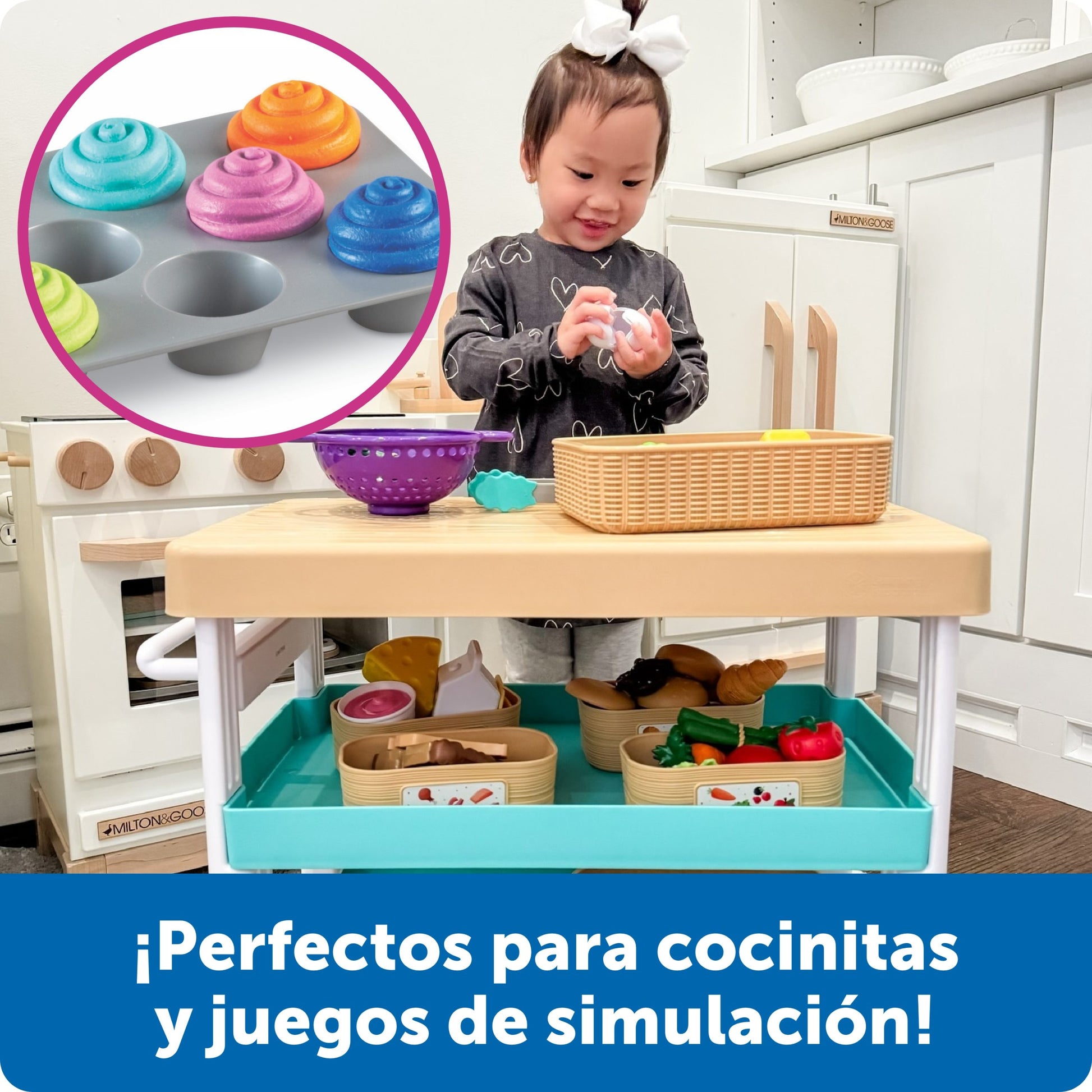 - Conceptos básicos: apoya la preparación escolar con exploración e identificación de colores. Los estudiantes pueden aprender los colores primarios (azul, rojo, amarillo) y los colores secundarios (naranja, verde y morado) con los cupcakes.