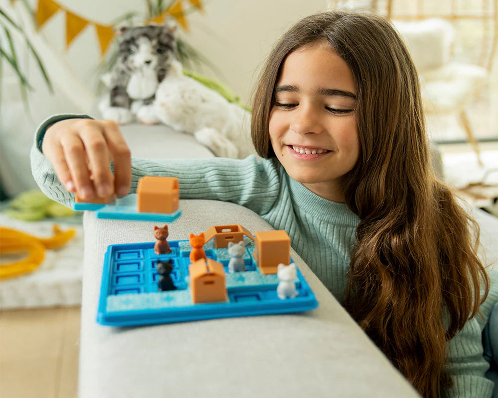 ¡Estos gatos se mueren por meterse en una caja! Mueve las piezas del rompecabezas una a una hasta que todos los gatos estén en una caja de cartón. ¿Puedes ayudarlos a encontrar su lugar favorito para dormir? ¡Este juego de rompecabezas secuencial para niños y adultos viene en un formato compacto y es perfecto para llevarlo contigo!