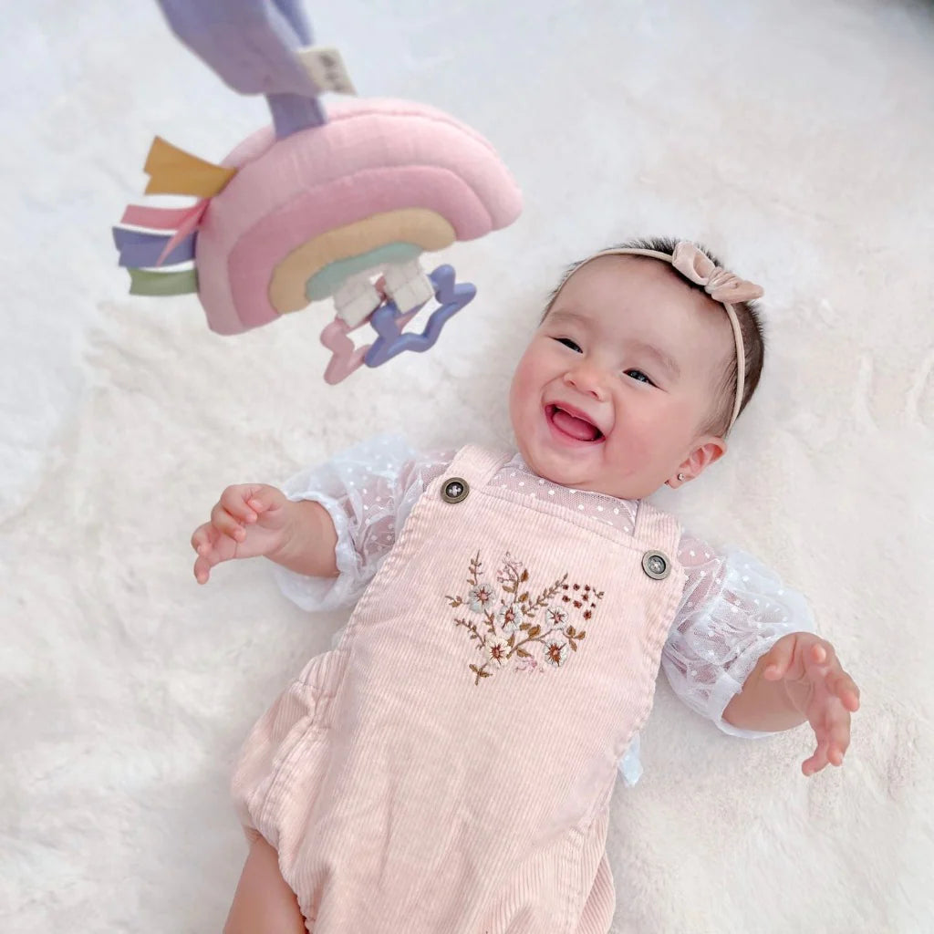 ¡Nuestra suave y lujosa colección de juguetes Itzy Friends, Ritzy Jingle™, es el accesorio perfecto para mantener al bebé entretenido! En el interior hay una bola cascabel que ayuda a estimular al bebé con su suave sonido. ¡Un lazo de fijación facilita el uso del Ritzy Jingle™ en un asiento para el automóvil, un cochecito o un gimnasio de actividades!