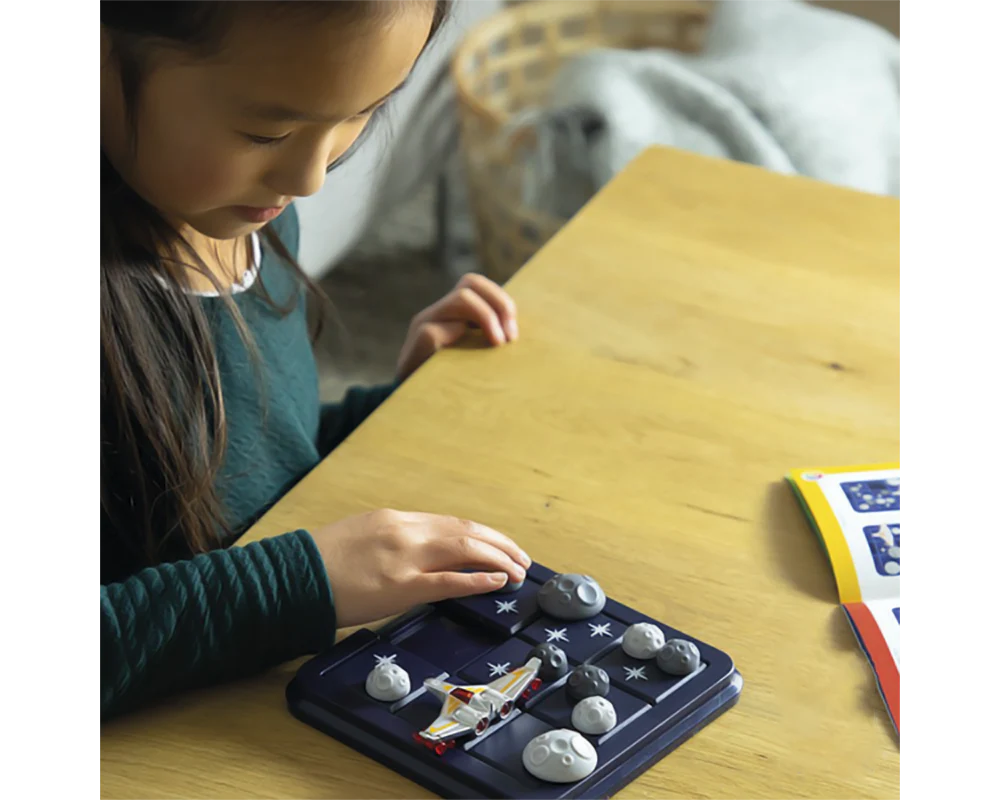 ¿Puedes pilotar tu nave espacial y escapar de una lluvia de asteroides? ¡Tus habilidades de vuelo serán probadas al límite! Misión Espacial es un juego de estrategia con 60 misiones, de principiantes a expertos, en el cual deberás deslizar las piezas a lo largo del tablero para que la nave pueda salir por la abertura. Ten cuidado de que ninguna parte de tu nave toque los asteroides o perderás.