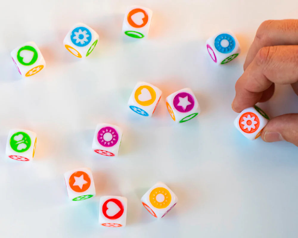 ¡Y empieza el juego! Todos los jugadores tendrán que lanzar sus dados al mismo tiempo, el primero en decir cuáles son las formas o colores que más se repiten, deberá voltear el reloj. Ahora los jugadores restantes tendrán diez segundos para identificar otros colores o formas diferentes que se repitan más que las seleccionadas por el primer jugador. Si no hay otras formas o colores con más apariciones, entonces ganará la ronda el jugador que volteó el reloj.